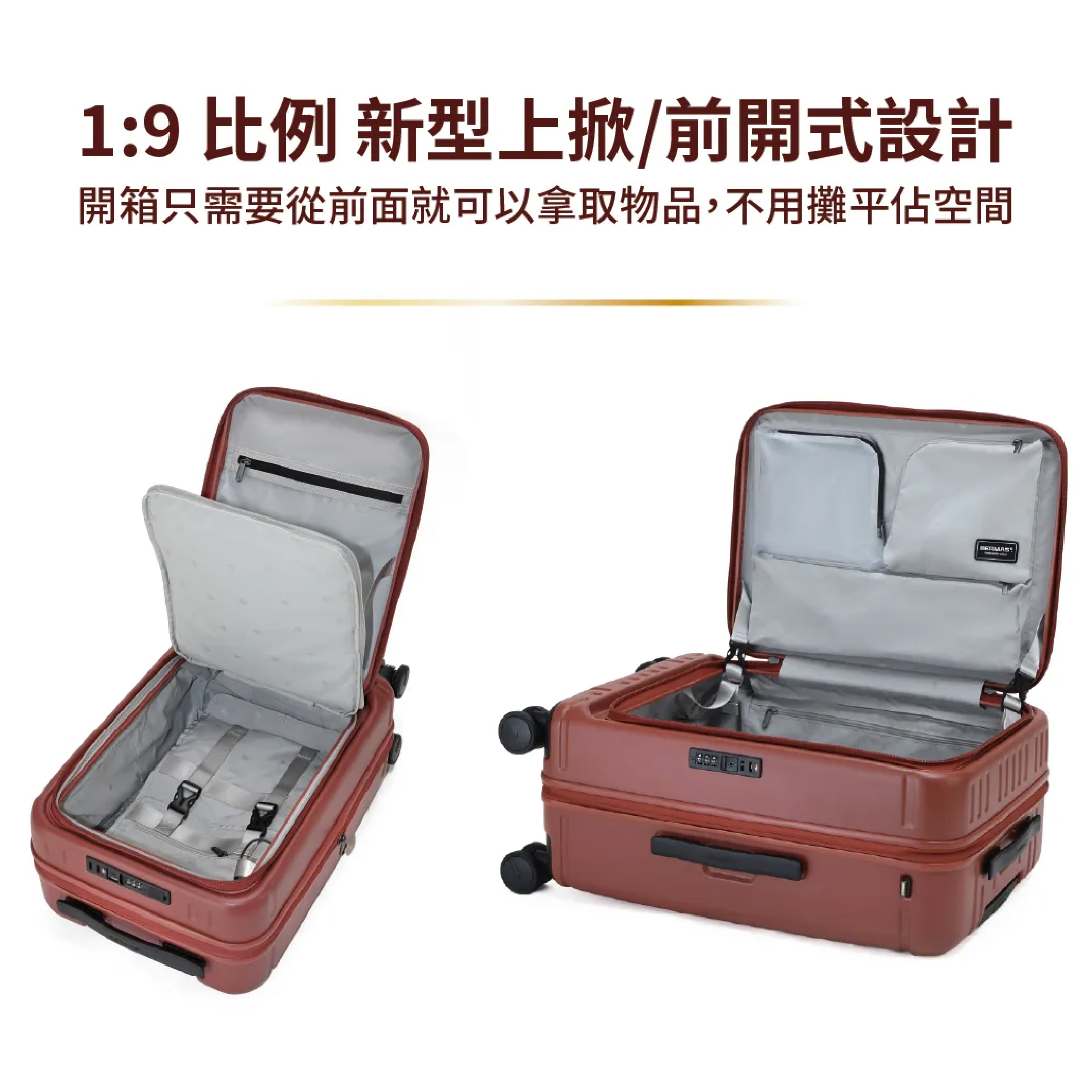 市場唯一配備日本煞車系統的上掀/前開行李箱。 1:9比例新型上掀設計,只需傳統對開式的一半空間,就可以打開取放行李,在小空間的旅館,特別方便。