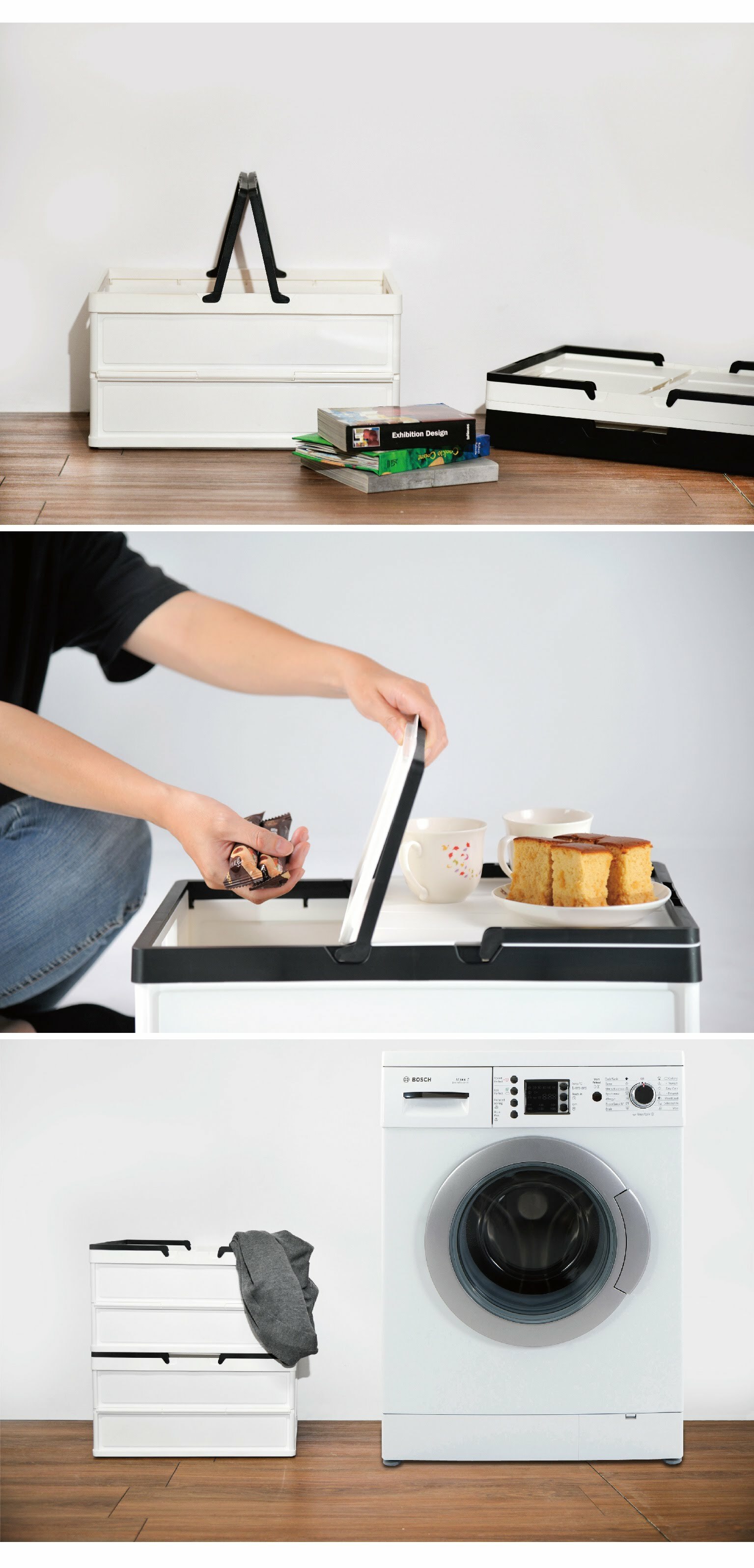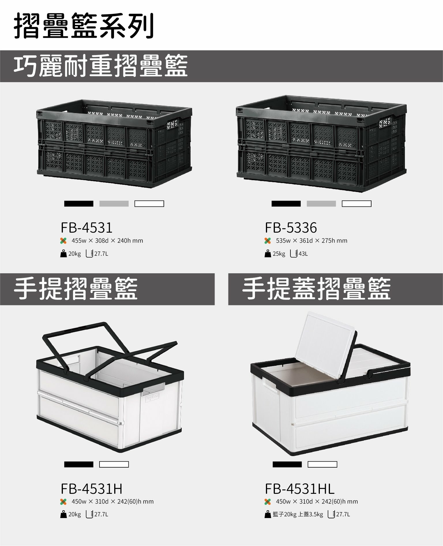 【勁媽媽】樹德 手提翻蓋摺疊籃 FB-4531HL(黑色款) 簡單收納 箱子 折疊 置物籃 籃子 盒子 櫃子
