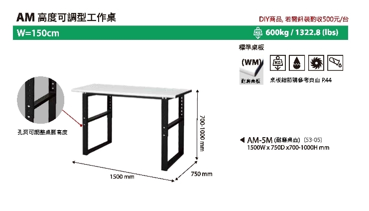 【樹德】AM5M 高度可調型工作桌 台灣製造 工作台 維修站 工廠 廠房 辦公桌 工作站 維修台 桌子 組裝台 工具台