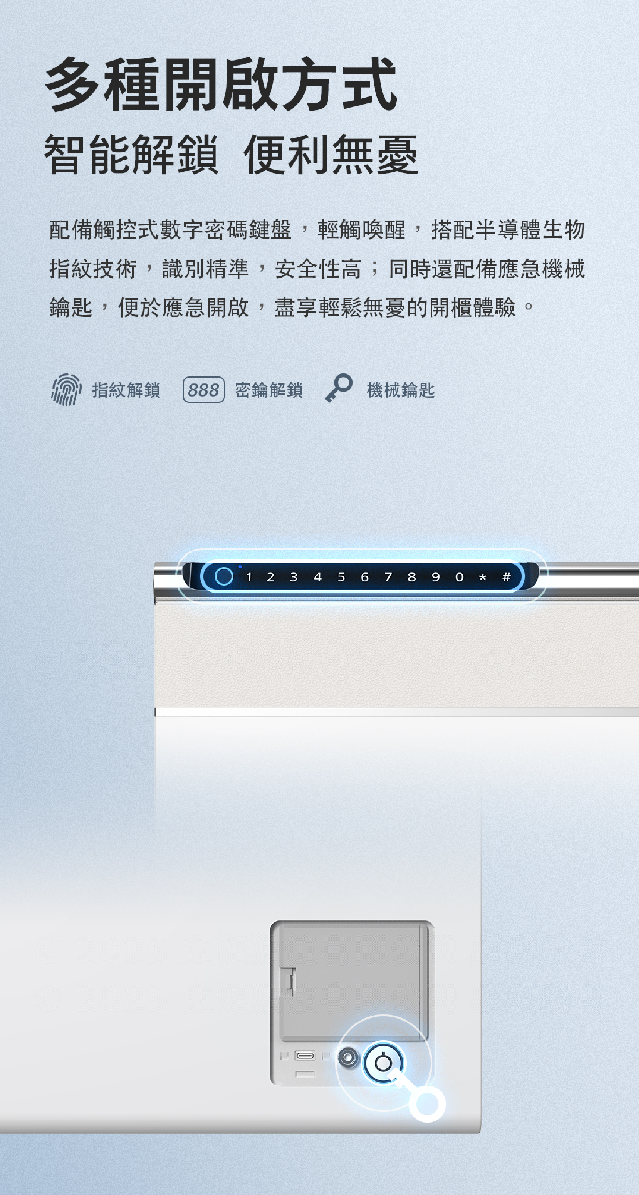 ★ 搭配半導體生物指紋技術,識別精準快速,安全性高
