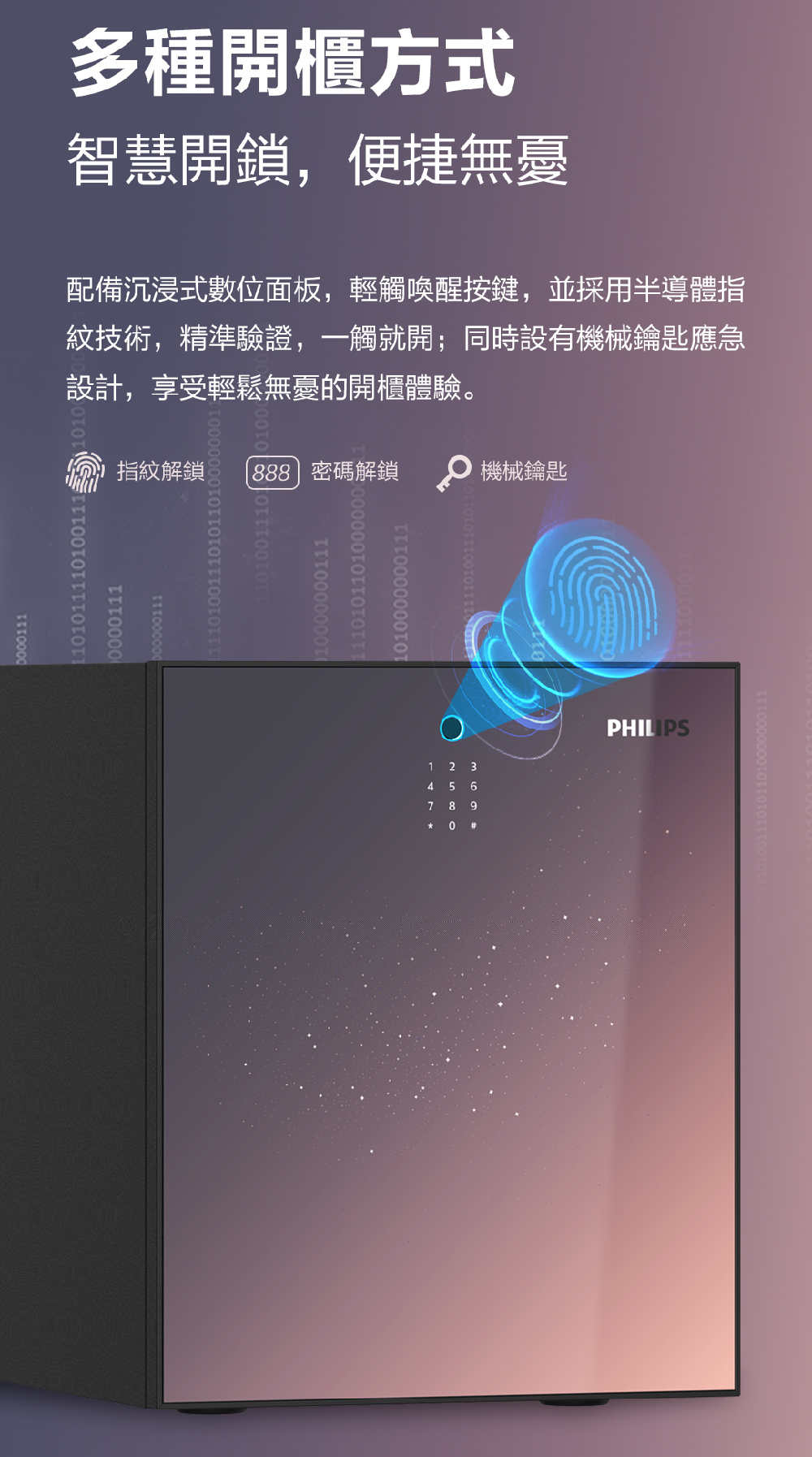 ★ 打破傳統單一鑰匙開櫃方式,具備指紋、密碼、機械鑰匙多種開鎖