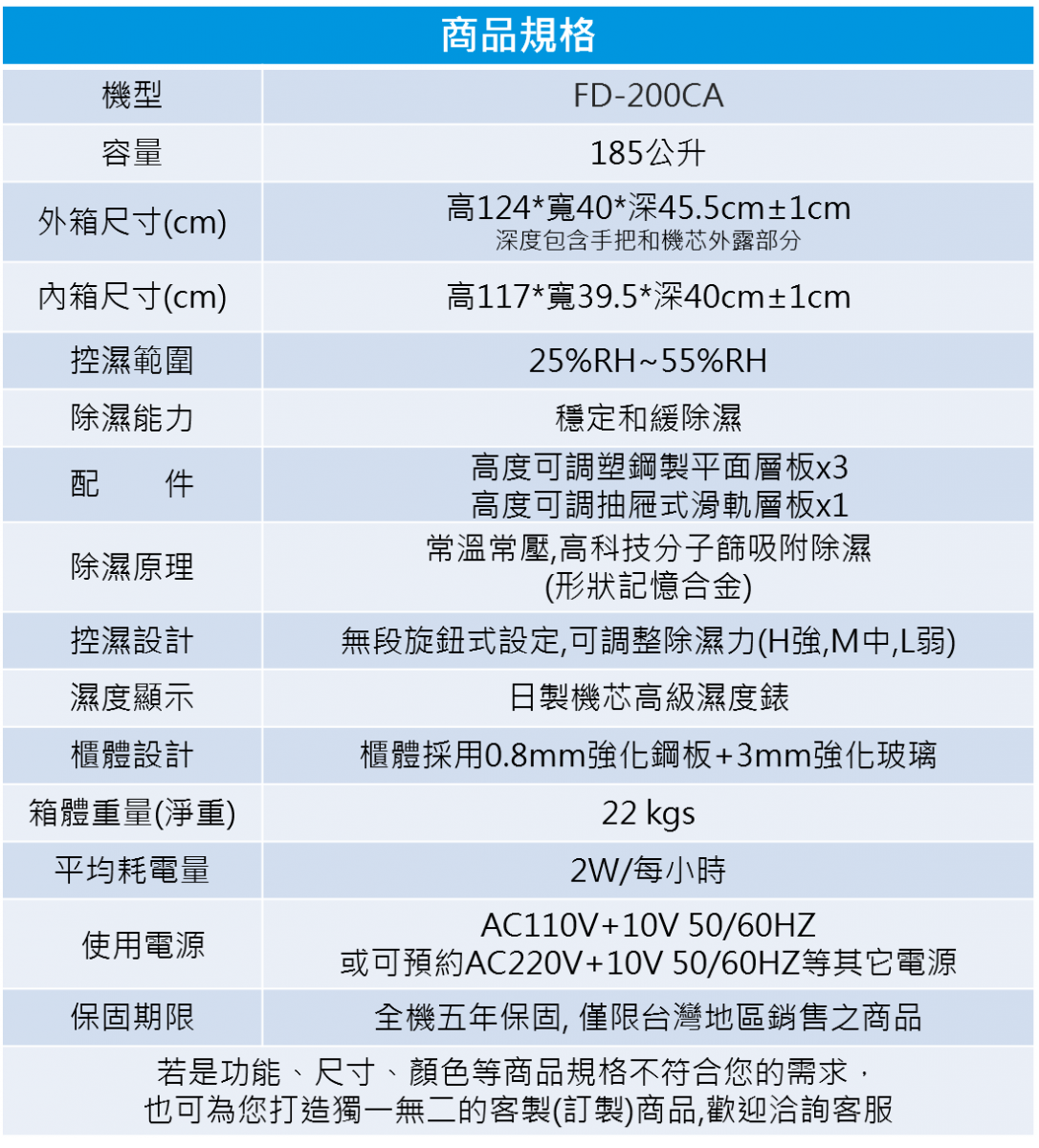 【防潮家】FD-200CA小型電子防潮箱 185公升-層板升級款 台灣製造 五年全機保固 原廠直送安心耐用