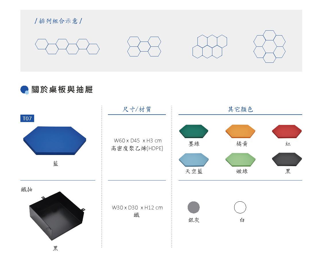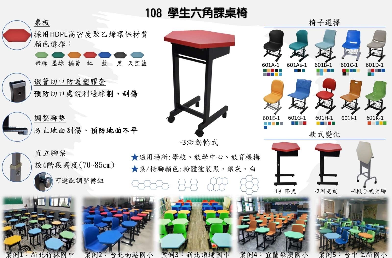 六角形課桌椅108D-3 個人桌椅 書桌 課桌 教室桌椅 學校推薦 課桌椅 台灣製造 大學椅 辦公椅 討論桌 組合桌 PBL教室 會議室 討論室 學習坊