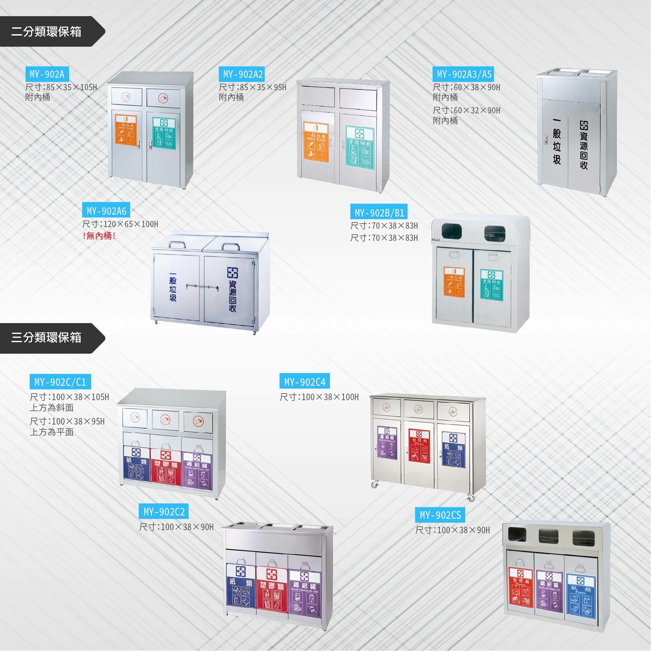 台灣製 二分類垃圾桶MY-902A5 不鏽鋼 清潔箱 垃圾桶 回收桶 分類桶 清潔 公園 街道 捷運 車站 公共空間