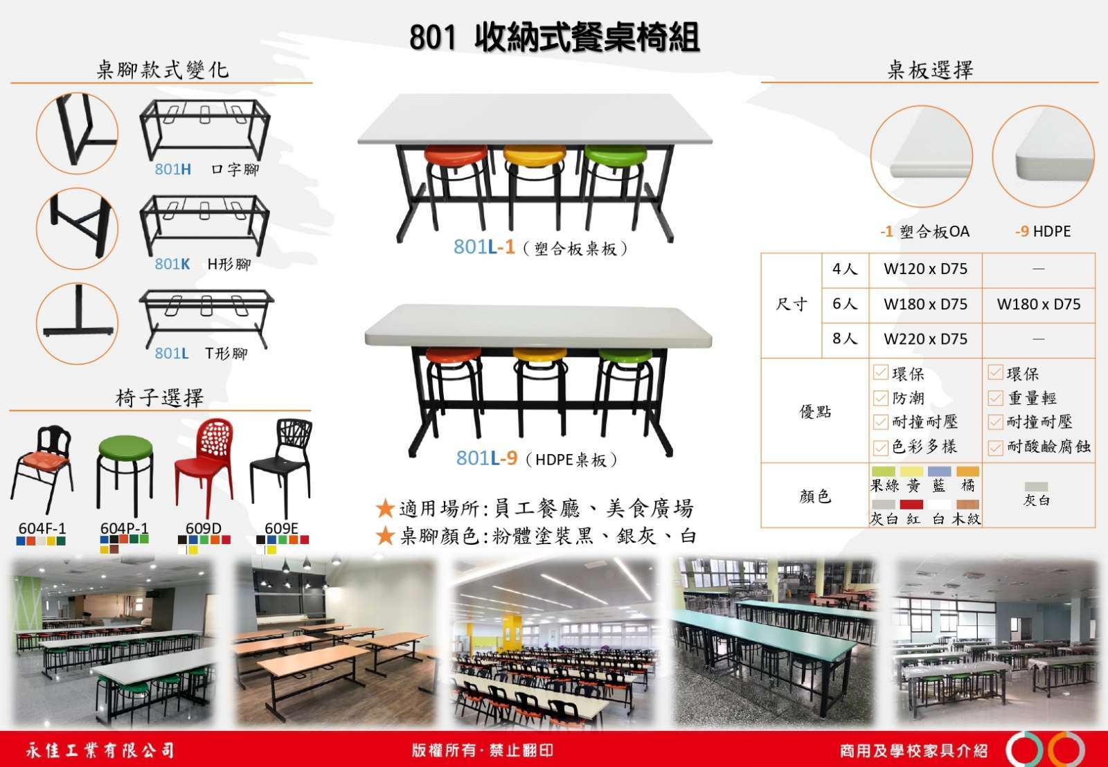 台灣製造餐桌 801L-9 T形桌腳 食堂桌 餐廳桌子 三種尺寸 OA塑合板桌面 灰白色 金屬腳架 可另外加購餐椅 耐用 軍隊桌