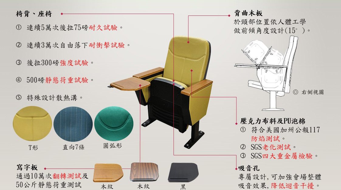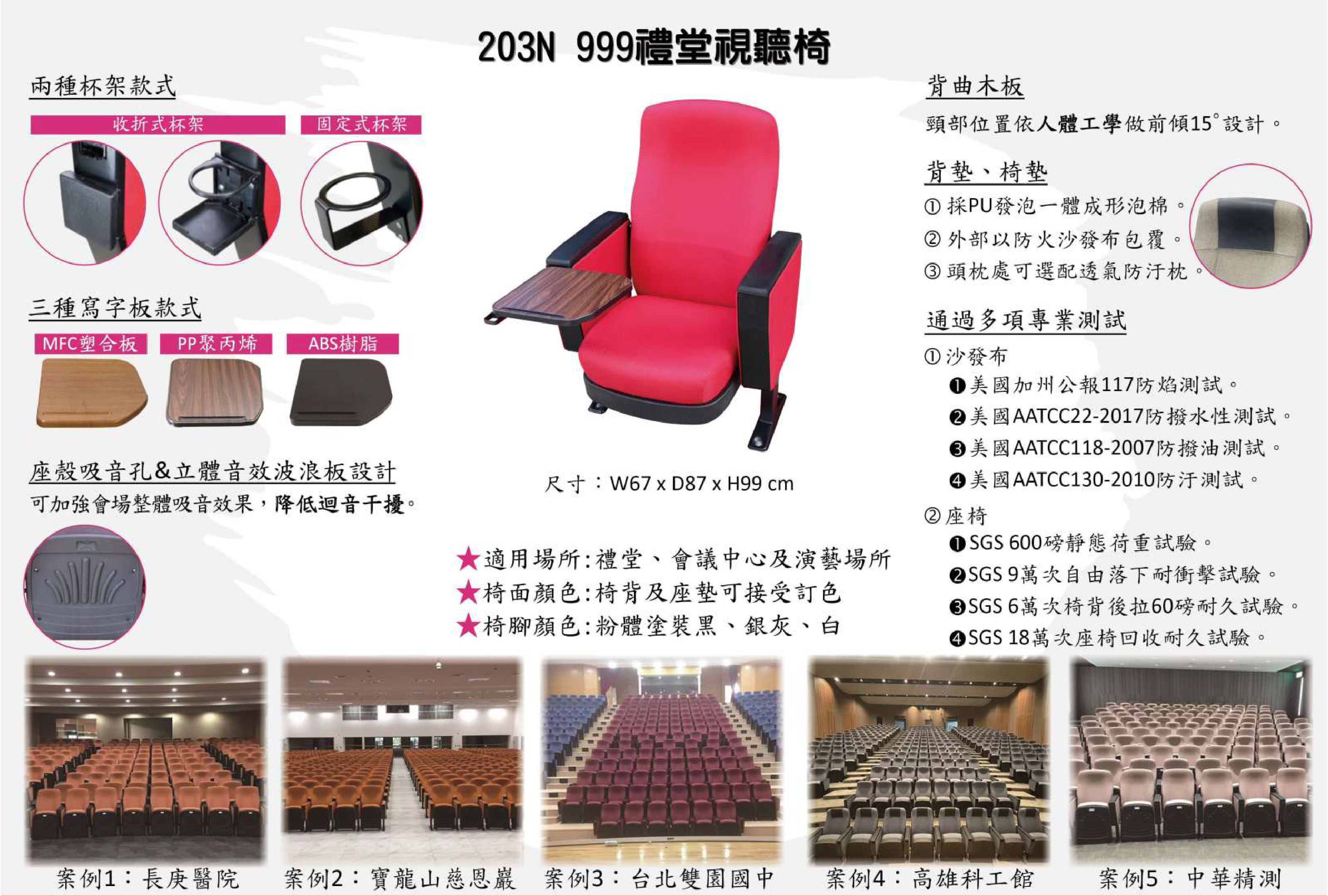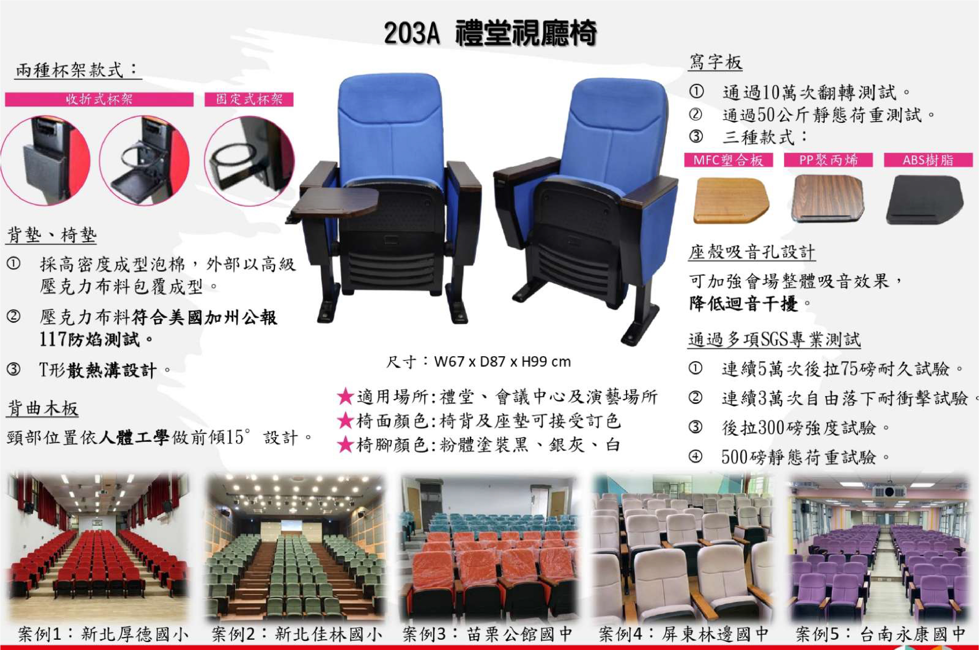 台製 禮堂視聽椅203F 椅子 學校椅子 視聽教室 升旗台 運動場 演唱會 音樂會 專用多人椅