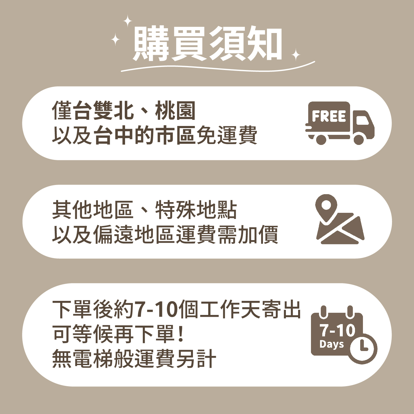 本商品為大型物件,僅送雙北、桃園以及台中免運,送其他地區或是任何偏遠地區運費另計,下單前請先確認。