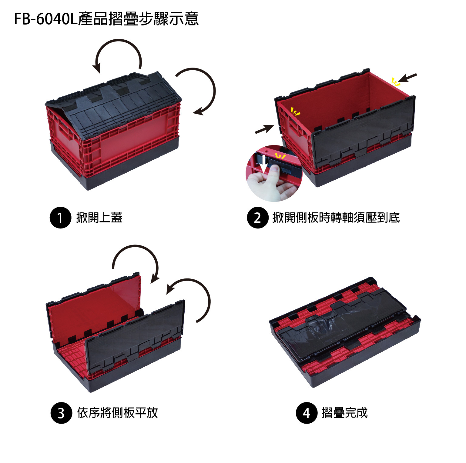樹德收納 掀蓋摺疊物流箱 FB-6040L黑白款 摺疊籃 收納箱 箱子 櫃子 野餐籃 籃子 收納籃