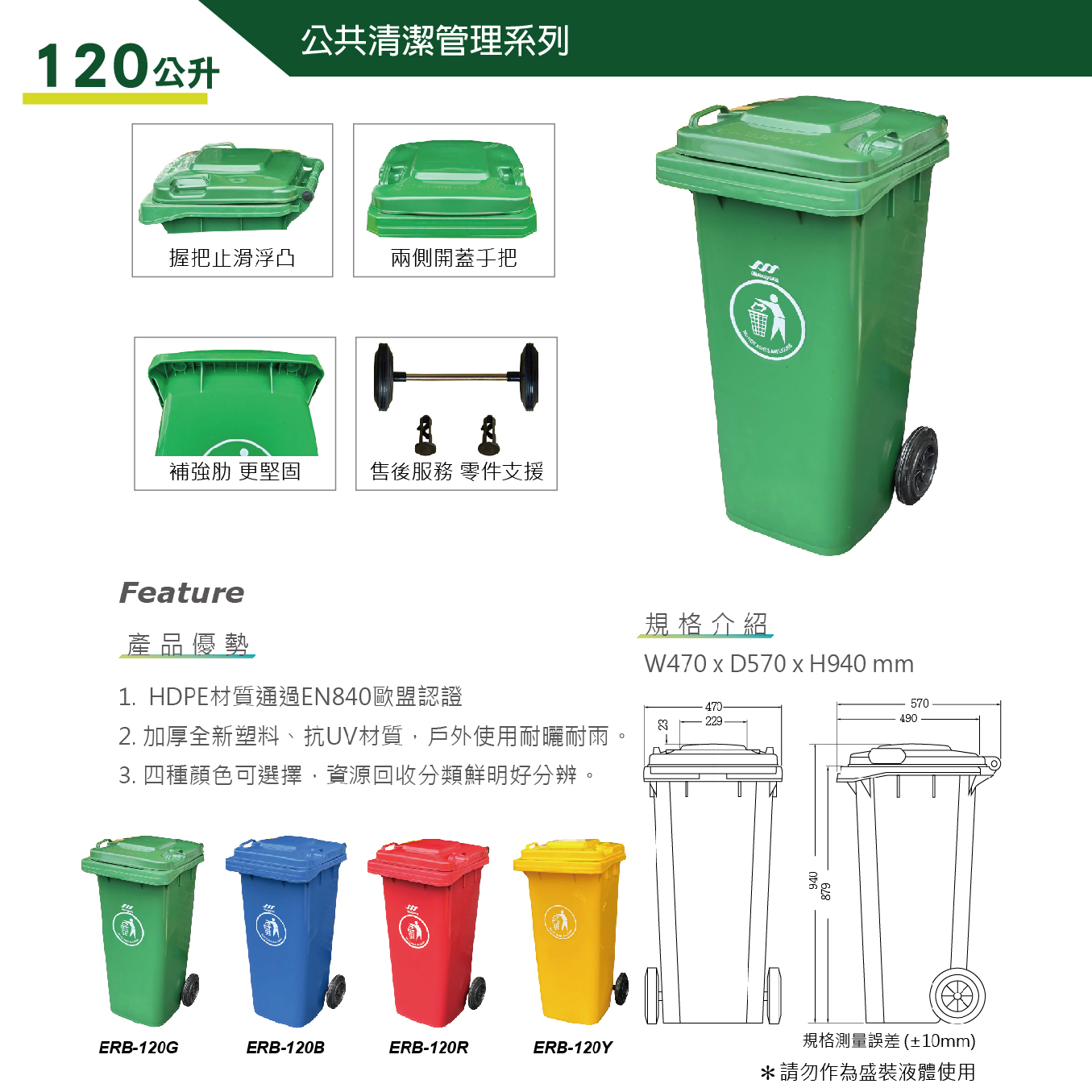 歐洲認證 垃圾托桶 ERB-241經濟型腳踏式-240公升 資源回收拖桶 防滑耐磨輪 高載重 社區學校垃圾桶