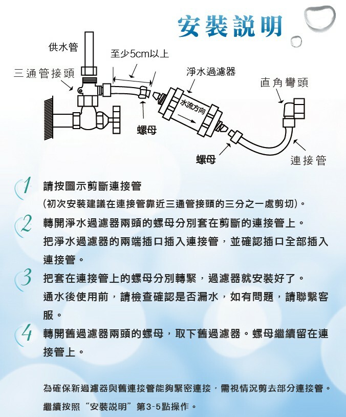 建議在使用4-6個月後,更換此過濾器。(具體使用週期依水質及使用量而定)