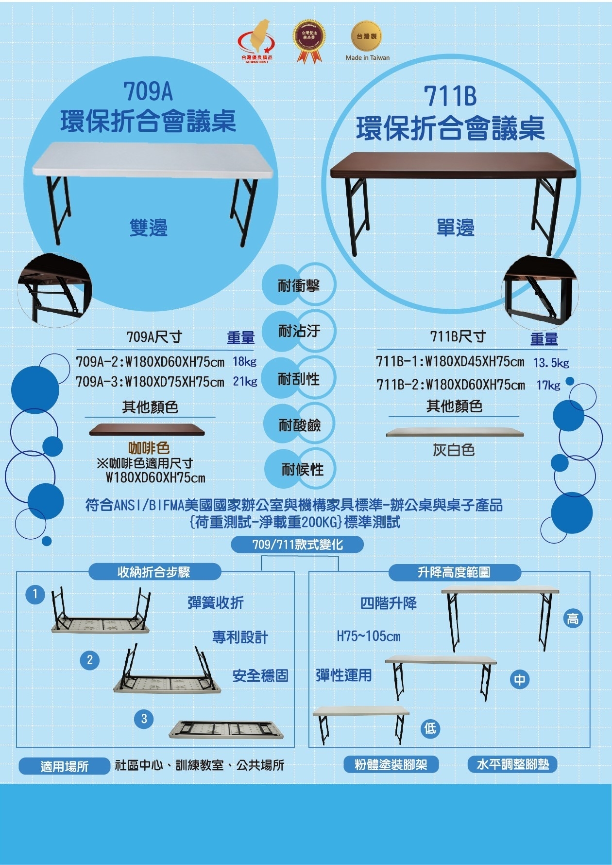 環保折合會議桌 709A-2 折合桌 摺疊桌 灰白桌板 黑色桌腳 辦公桌 長桌 長方形桌 桌子