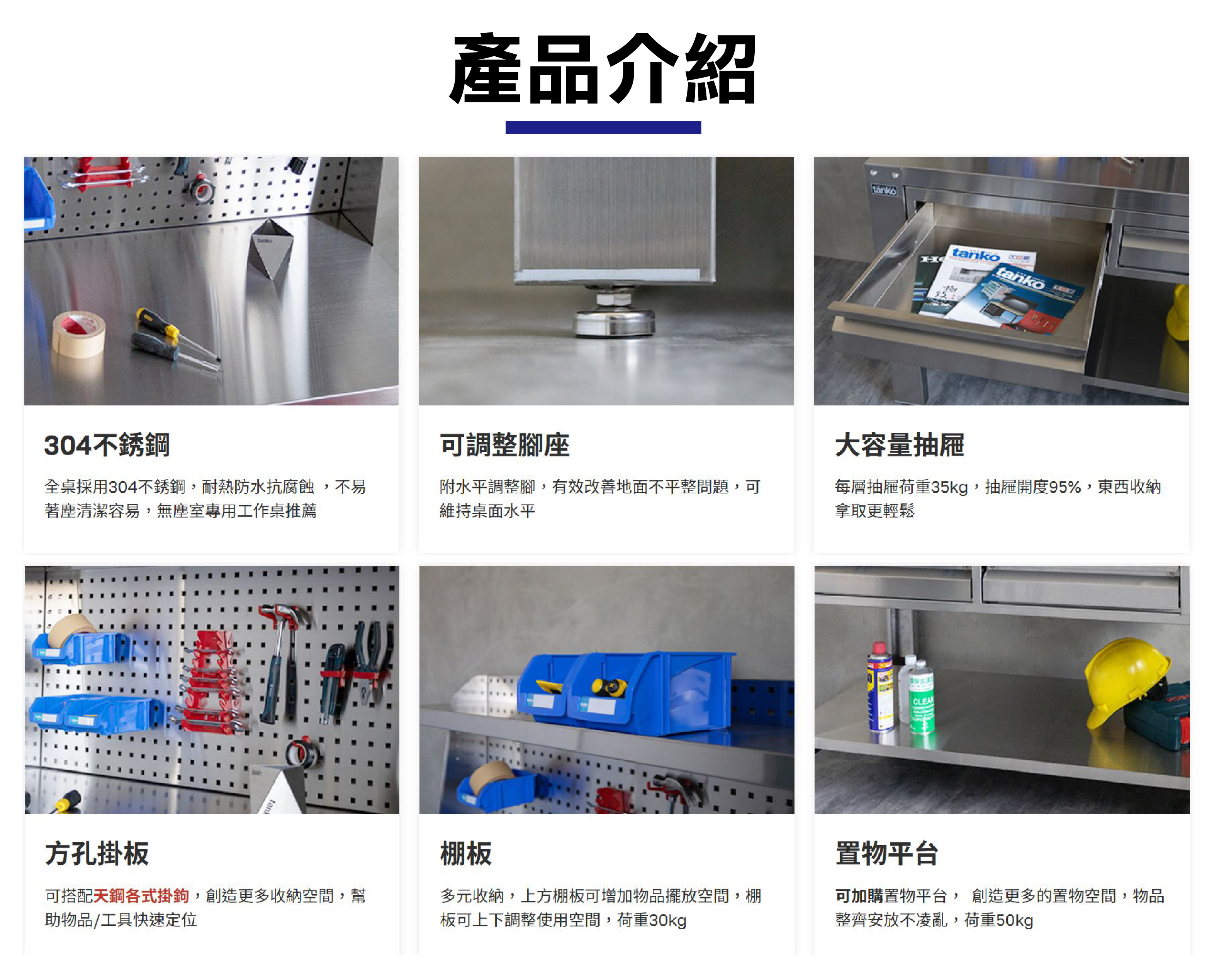 臺灣製造-天鋼 不銹鋼工作桌 WDT-4202S 抽屜款 寬1221mm 304不銹鋼桌面書桌 耐熱防水抗腐蝕 工業桌 工具桌 可加洞洞板 抽屜