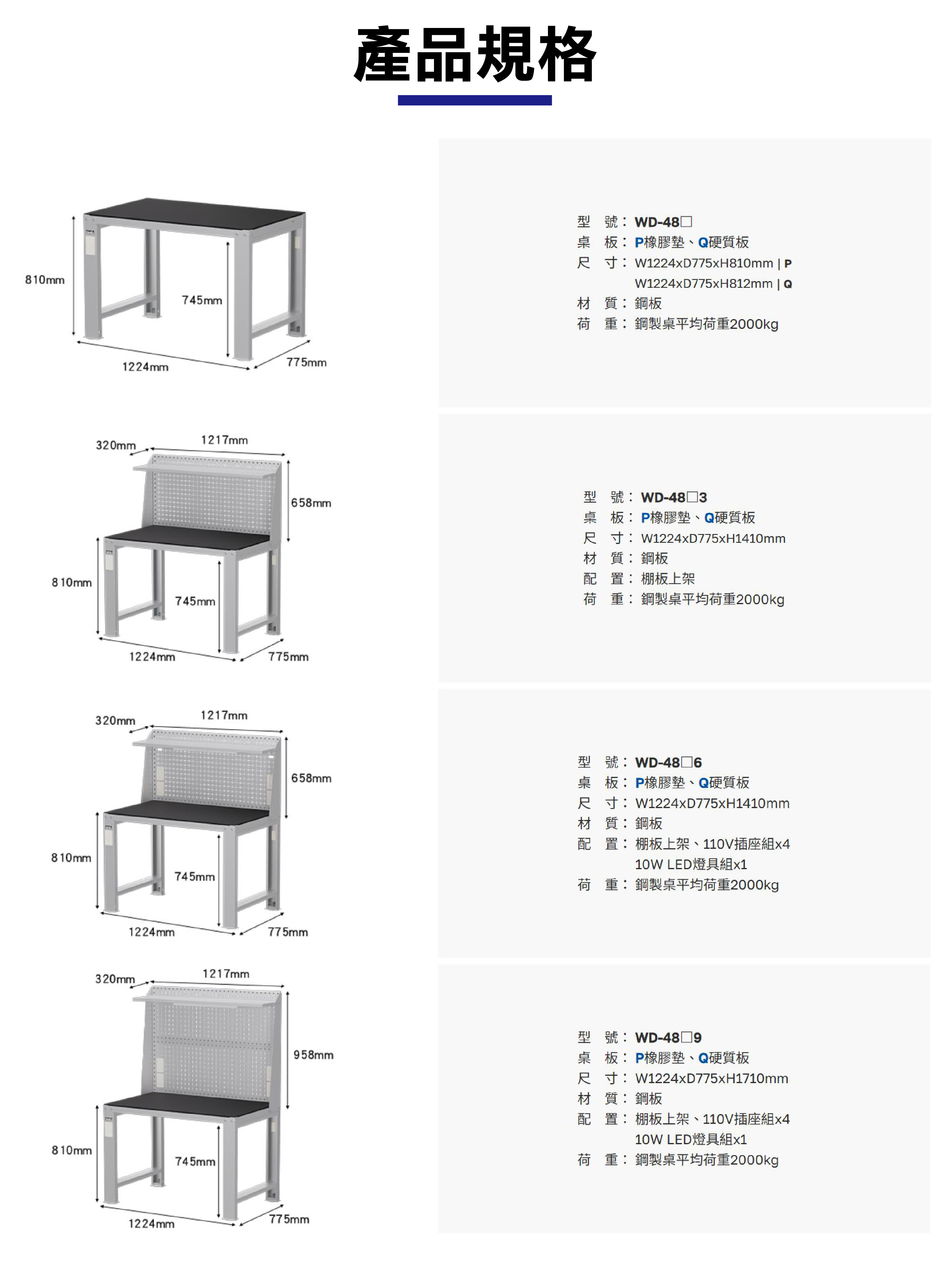 鋼製工作桌有(橡膠墊)及(硬質板)兩種桌墊選擇