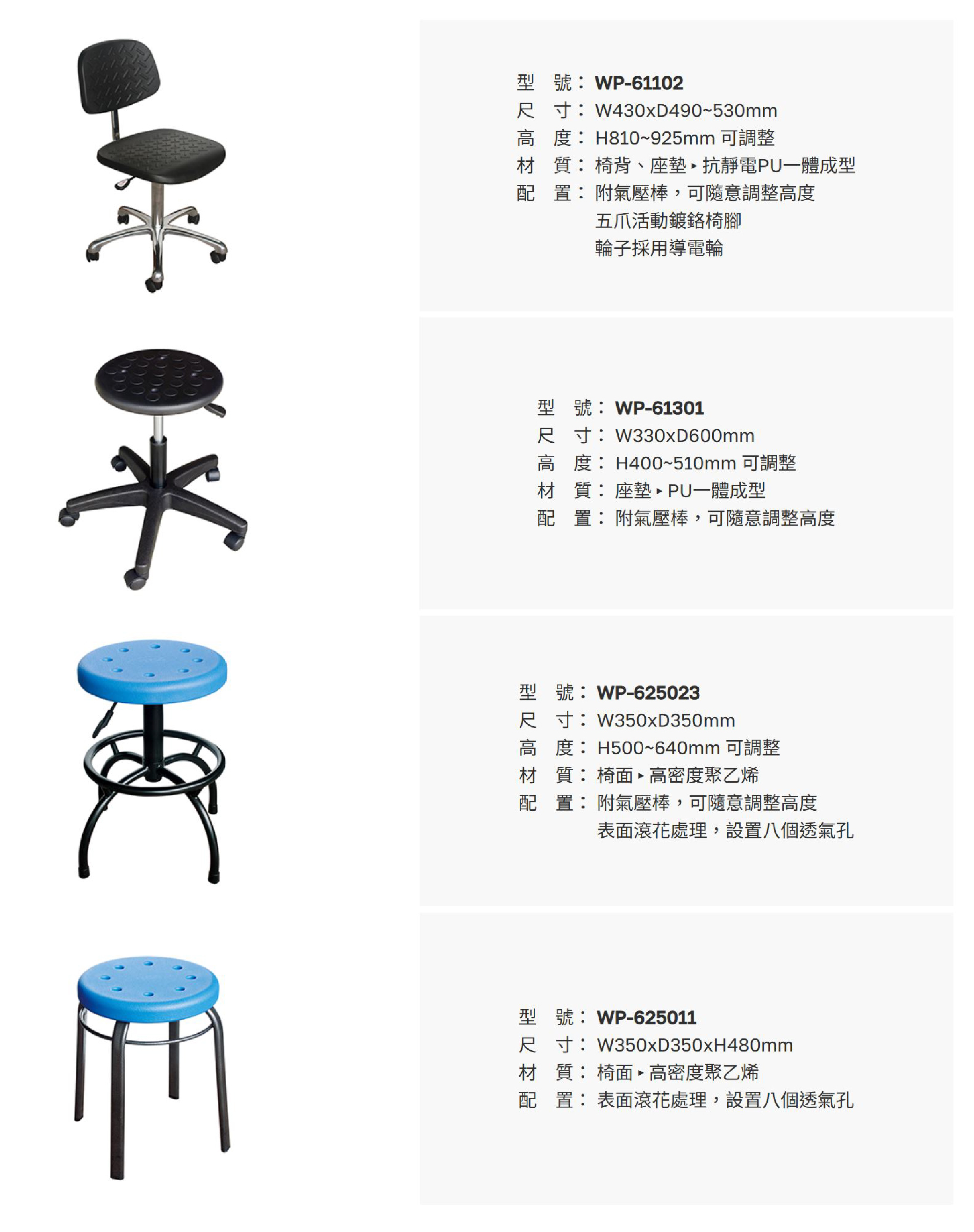 臺灣製造-天鋼 防靜電工作椅 WP-61102適合包裝作業廠、儀器存放、教室、展示廳 防靜電椅 高度調整椅 五爪椅 導電輪