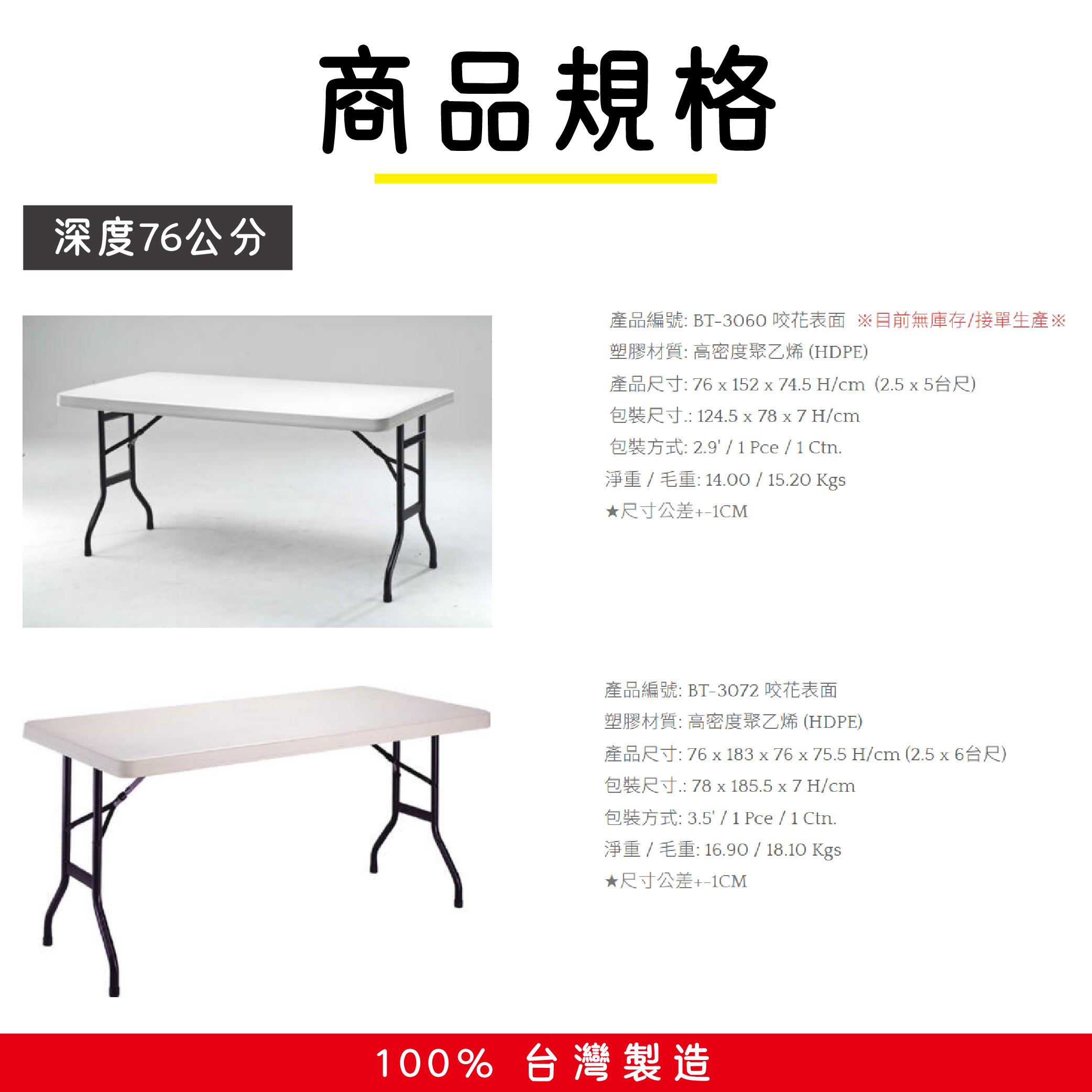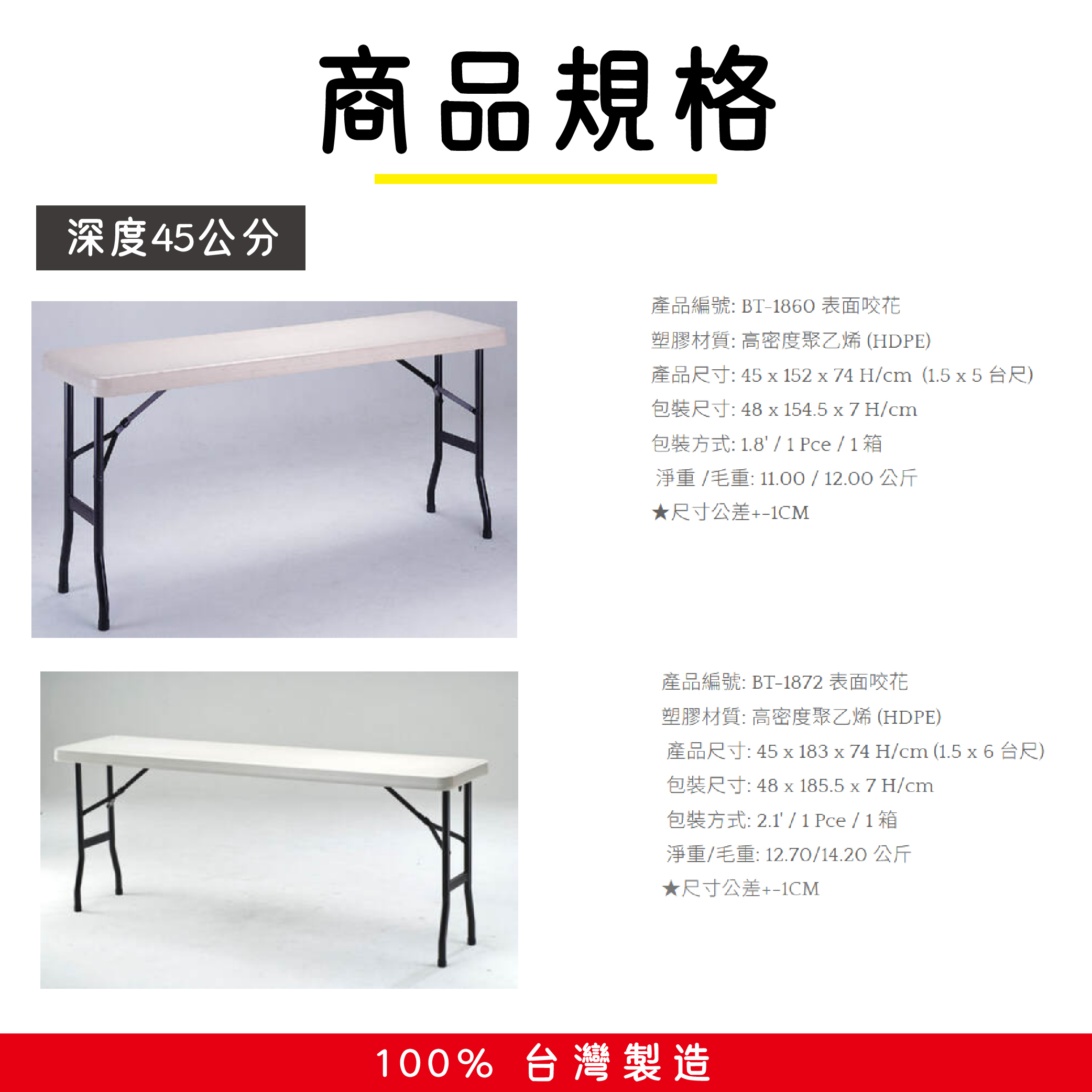 使用後塑膠可100%回收,亦沒有一般木製折疊桌含甲醛問題!