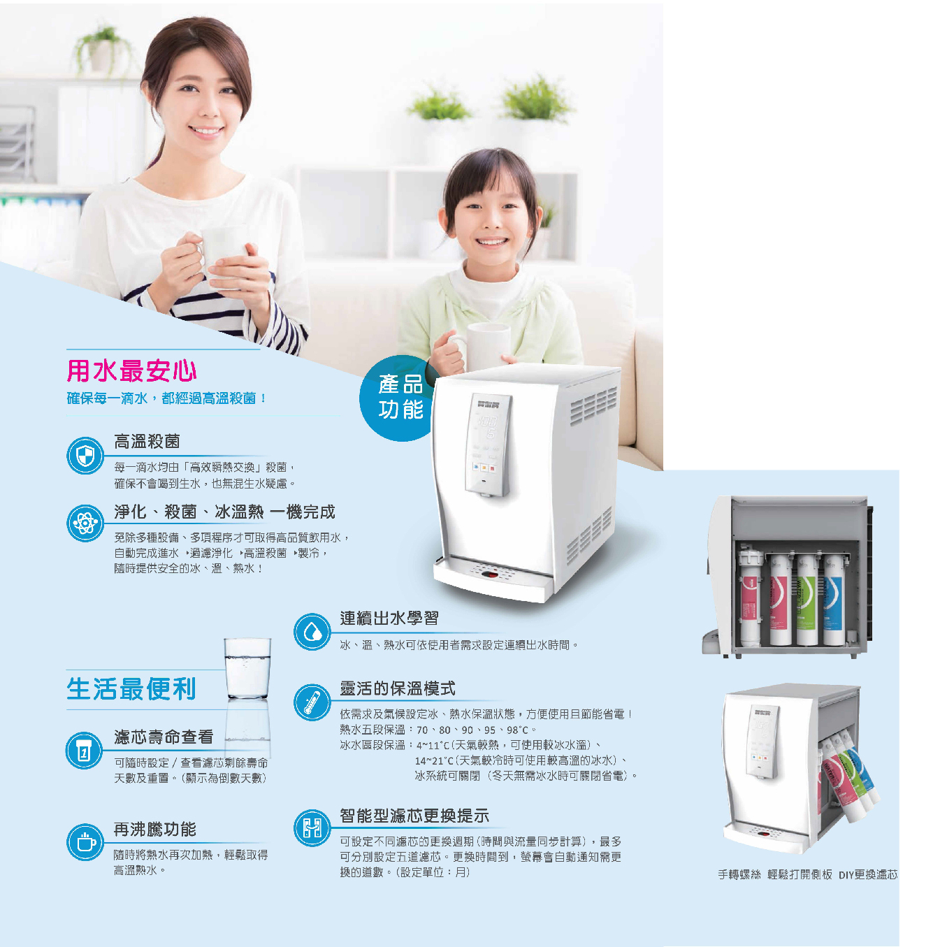 廚下型冰熱飲水機 智能節電 安全設計 恆溫系統 60度旋轉空間