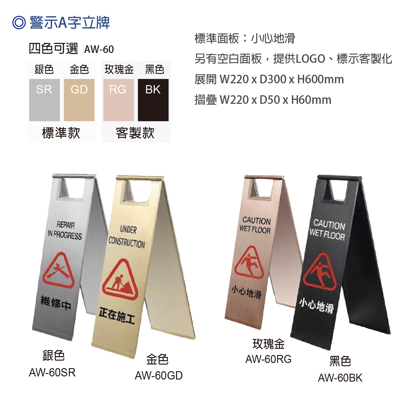警示用A字牌 銀色 小心地滑告示牌 警示牌 施工中 維修中 警告 收納告示牌 展示牌 工業風