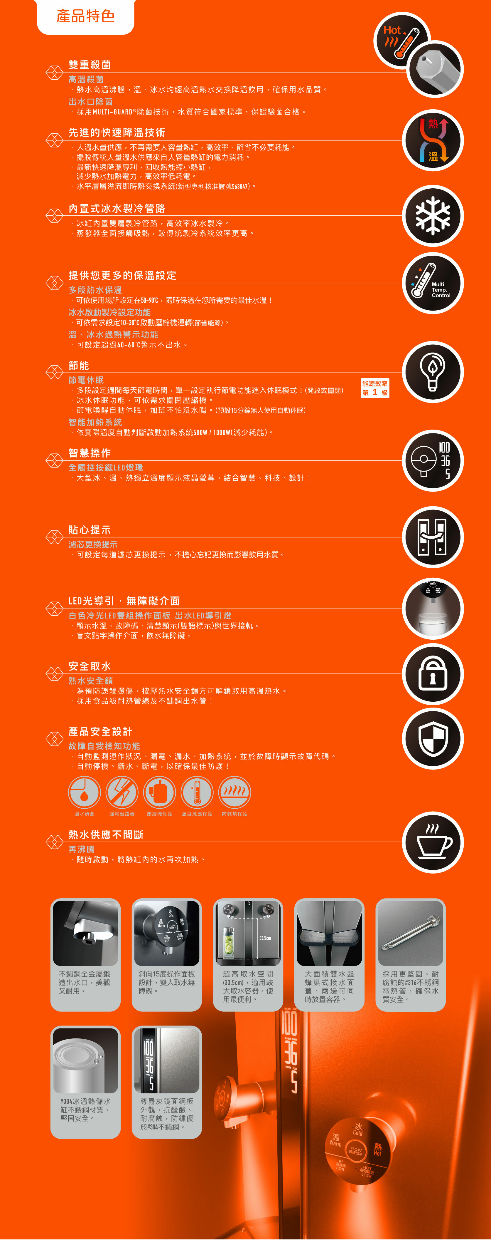 高溫殺菌、出水口除菌,確保飲用水品質。