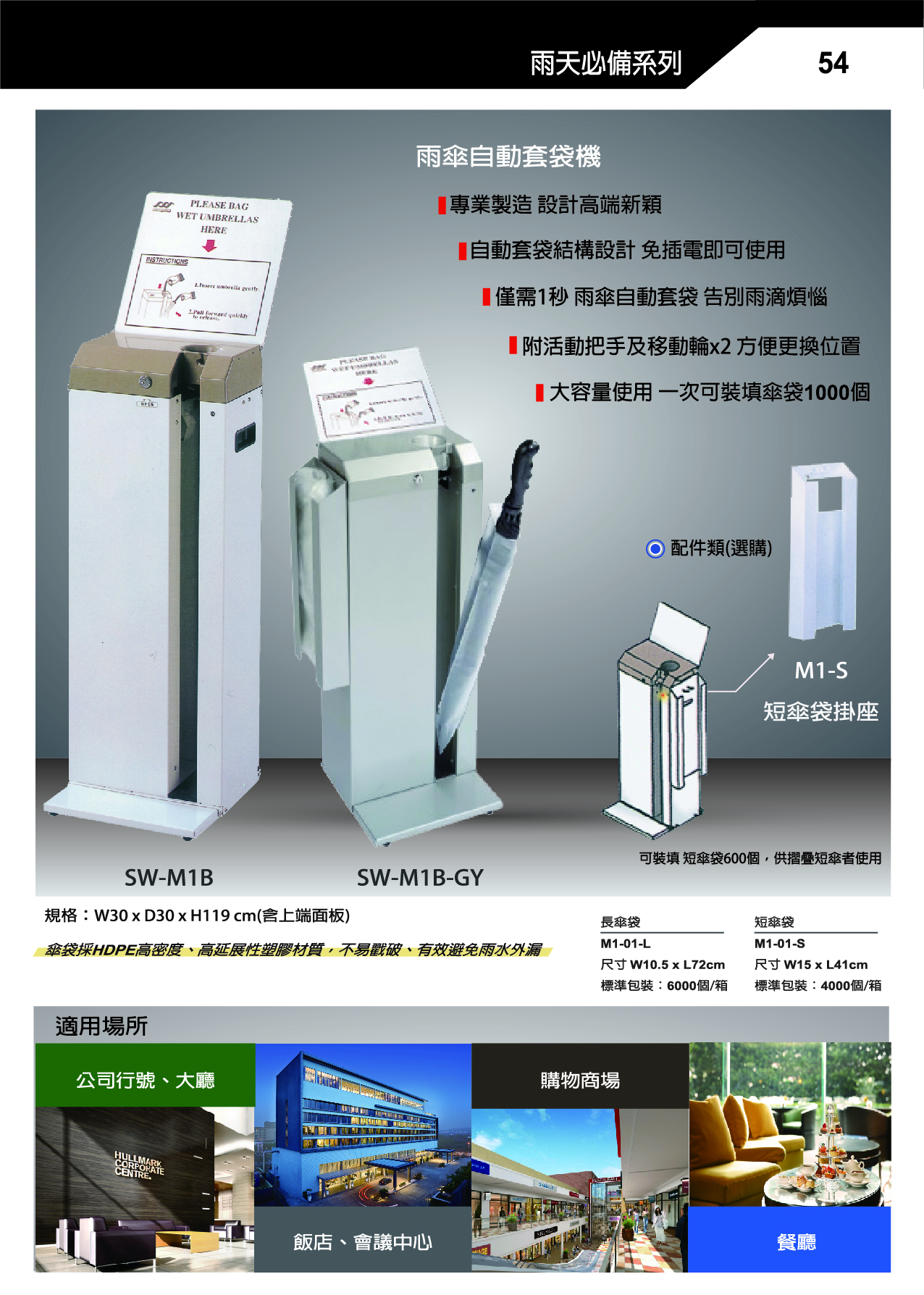 雨傘自動套袋機 SW-M1B 傘套架 大容量 簡易方便 免插電 自動裝傘套機 一次可填充1000個 專業製造 附活動把手及移動輪 下雨幫手